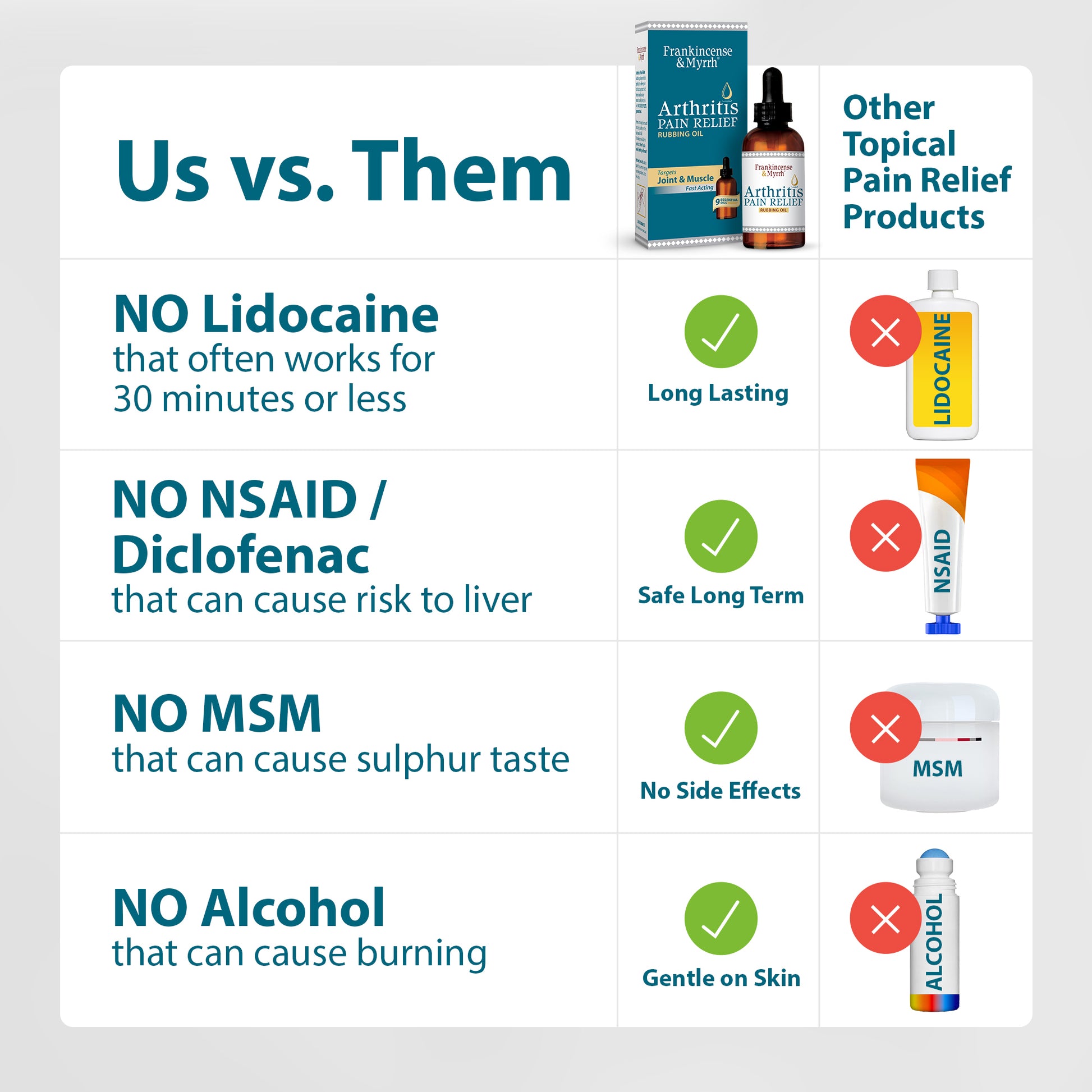 Arthritis Pain Relief rubbing oil quickly eases sore muscle, joint, tendon and back pain. The easy to apply rubbing oil with 9 essential oils, penetrates deep at the site of pain, reducing inflammation for fast, targeted relief with NO negative side effects, guaranteed.