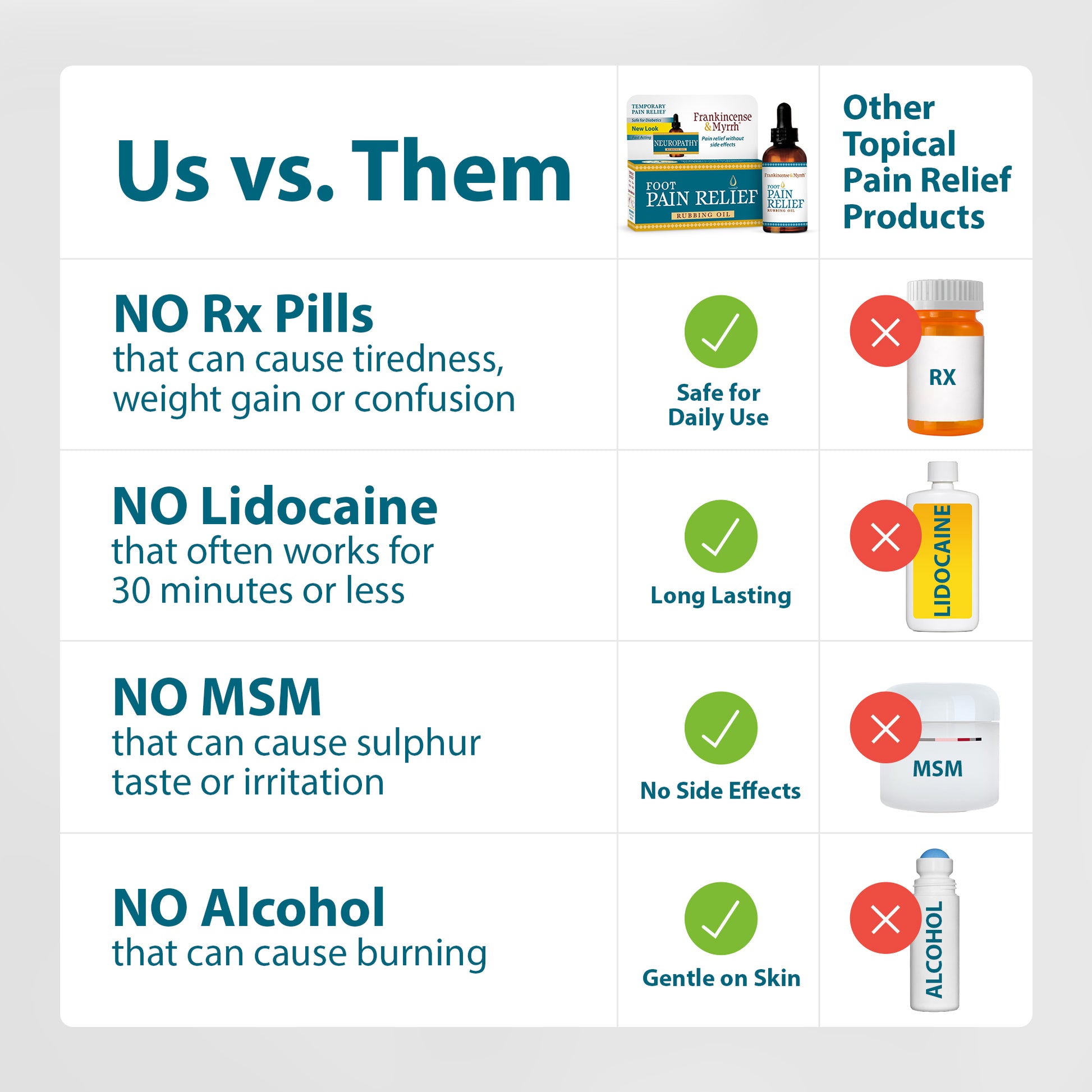 My husband has had discomfort in his feet for a least a year now with burning and a tight, pulling feel on the bottom of his feet. He is presently on so many Rx's that we needed to find a natural cure. He found immediate relief with this product. This first couple times he used it the relief was short in duration. But after daily use it is working soooo much better.